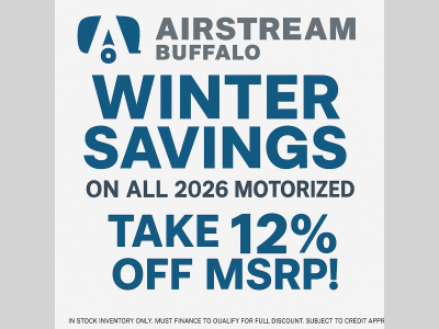 Airstream of Buffalo is not responsible for any misprints, typos, or errors found in our website pages. Any price listed excludes sales tax, registration tags, and delivery fees. Manufacturer pictures, specifications, and features may be used in place of actual units on our lot. Please contact us @(716) 504-0400 for availability as our inventory changes rapidly. All calculated payments are an estimate only and do not constitute a commitment that financing or a specific interest rate or term is available.