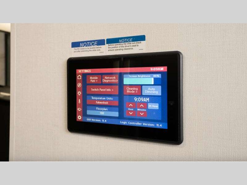 • E-Z Drive™ Premier; One-piece, seamless fiberglass front & rear caps; Automotive-bonded panoramic window in front cap w/ power shade; Lippert™ 4000 series dual-pane frameless bonded windows; (2) 15,000 BTU A/C units w/ heat pump on main A/C; Electric patio awning w/ LED lights; 2,000W pure sine wave inverter; Power cord reel w/ 50-amp service; Sony® infotainment center w/ Apple CarPlay® & Android Auto™; Backup & side-view cameras; Residential refrigerator; Residential-size convection microwave