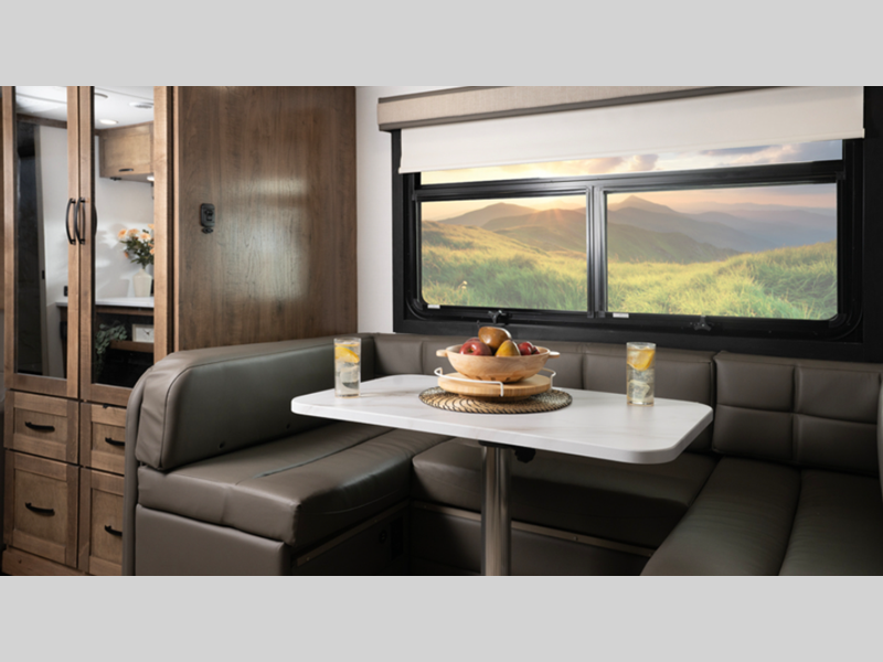 - Entegra-exclusive, easy-operation legless dinette table (32U, 33F); U-shaped dinette (30M); Car seat tethers (select floorplans)
