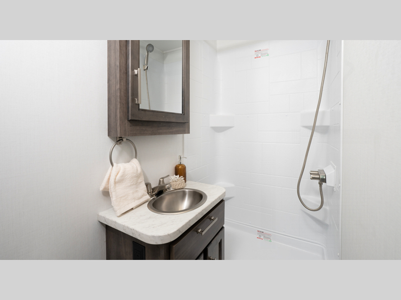 There is a one-piece seamless fiberglass front cap for added protection to your unit, and you'll appreciate the backup camera when it's time to park. Heated holding tanks come standard, along with an exterior utility center, an outside shower, and many more convenient amenities. You will enjoy the interior with its pleated blackout shades, high-intensity, recessed LED ceiling lights, and 7' ceiling height!