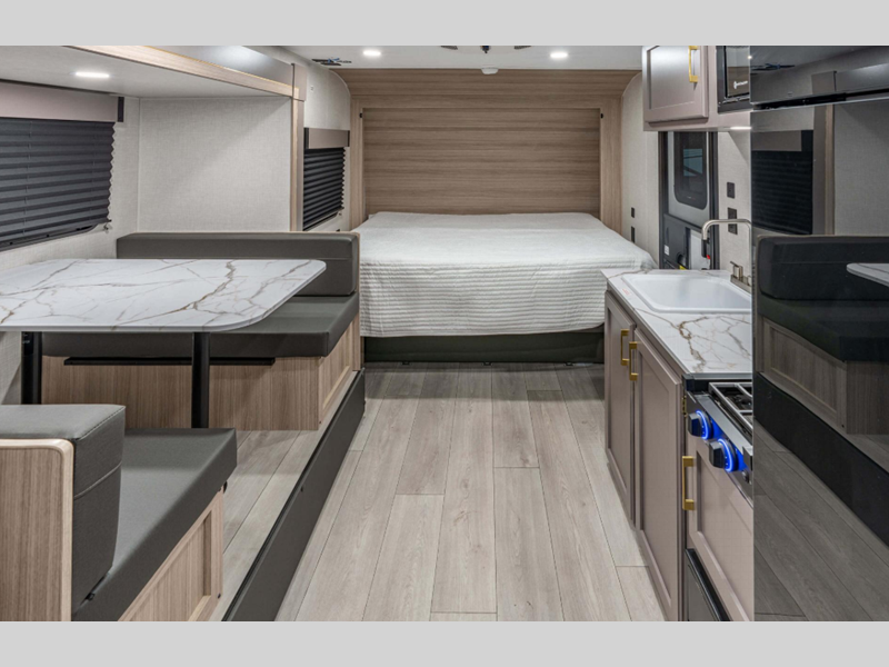 Each model includes residential grade linoleum, tons of storage space, and rail-style cabinet doors with modern handles. You will appreciate the digital media stereo with Bluetooth, USB ports for your phone or tablet, and an omnidirectional HDTV antenna with Wi-Fi prep if you need to get some work done while you're away from home. The Sportsmen Classic has R-7 insulation in the sidewalls, tinted windows, and self-adjusting electric brakes.